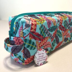 • Large Handmade Knitting Needle Bag – Teal Feathers