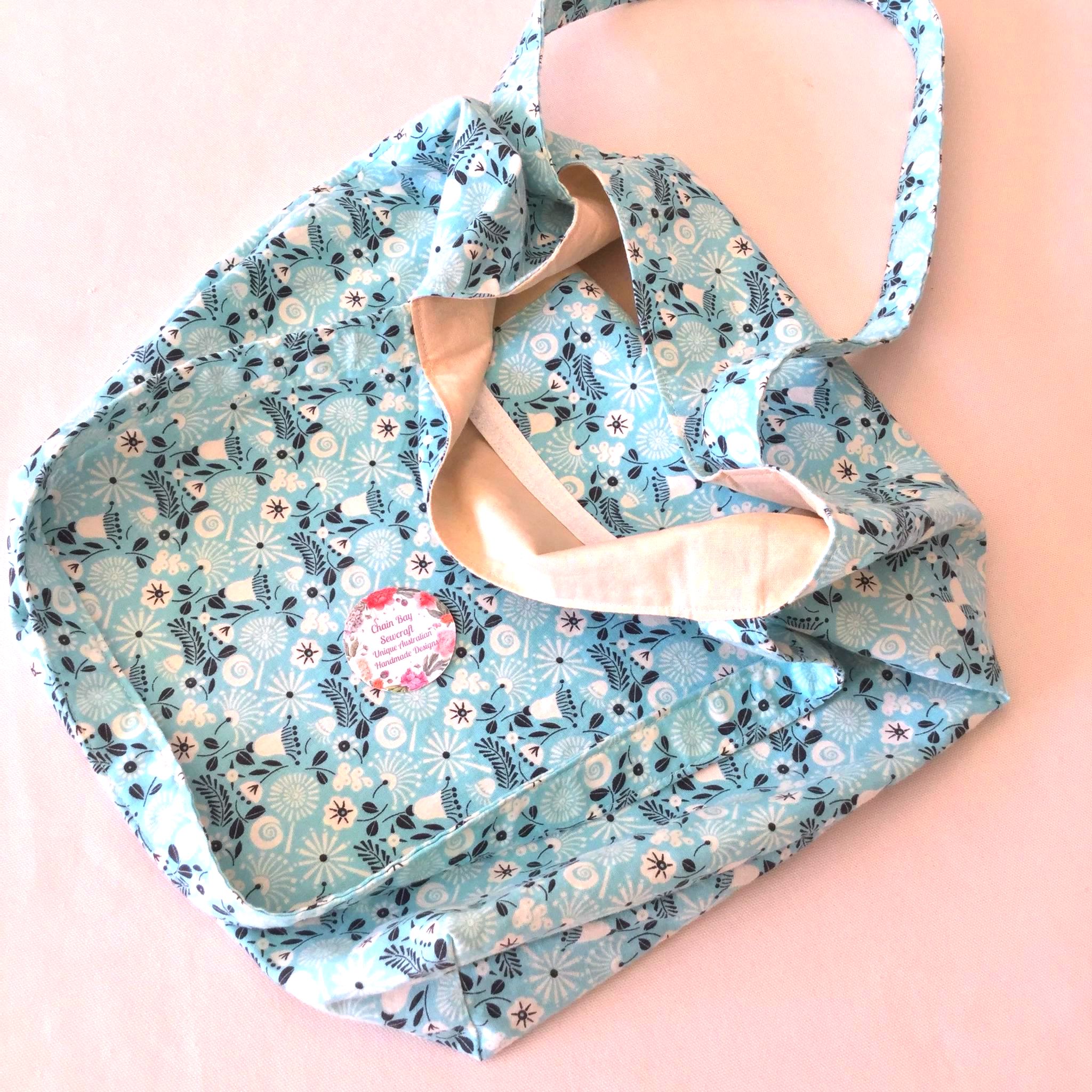 Bluebells Reversible Tote Bag. Handmade with 100% cotton exterior and lining. This eye catching bluebells fabric really makes this bag stand out in a crowd! Only one available and ready to post!