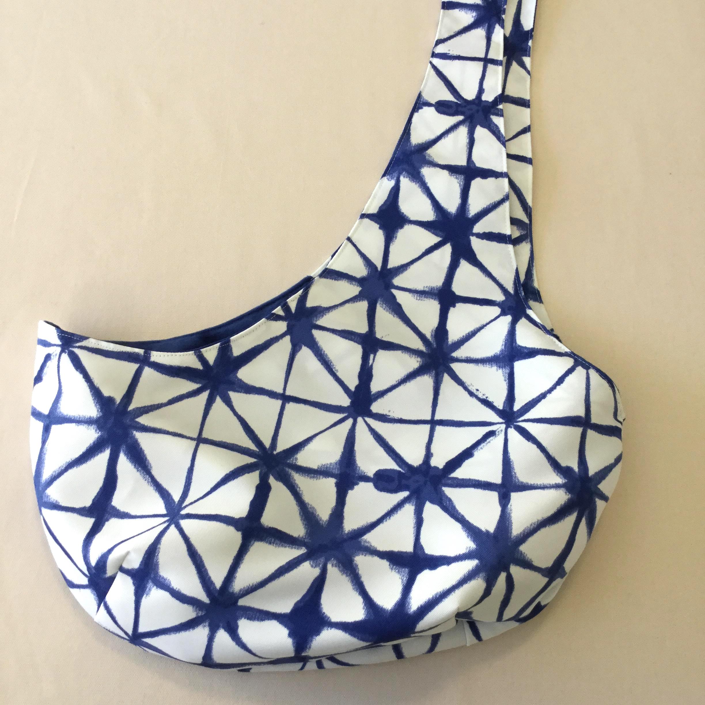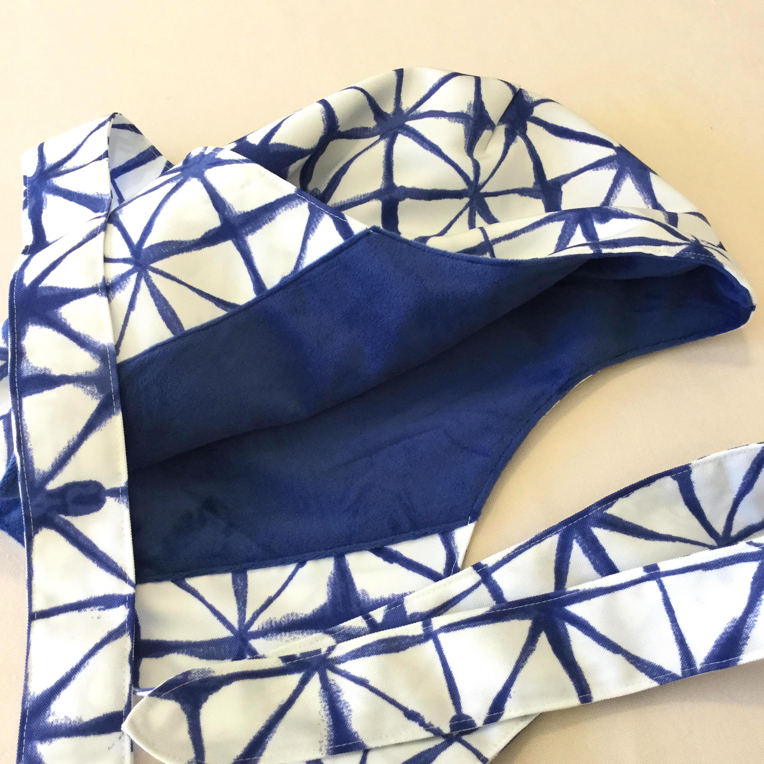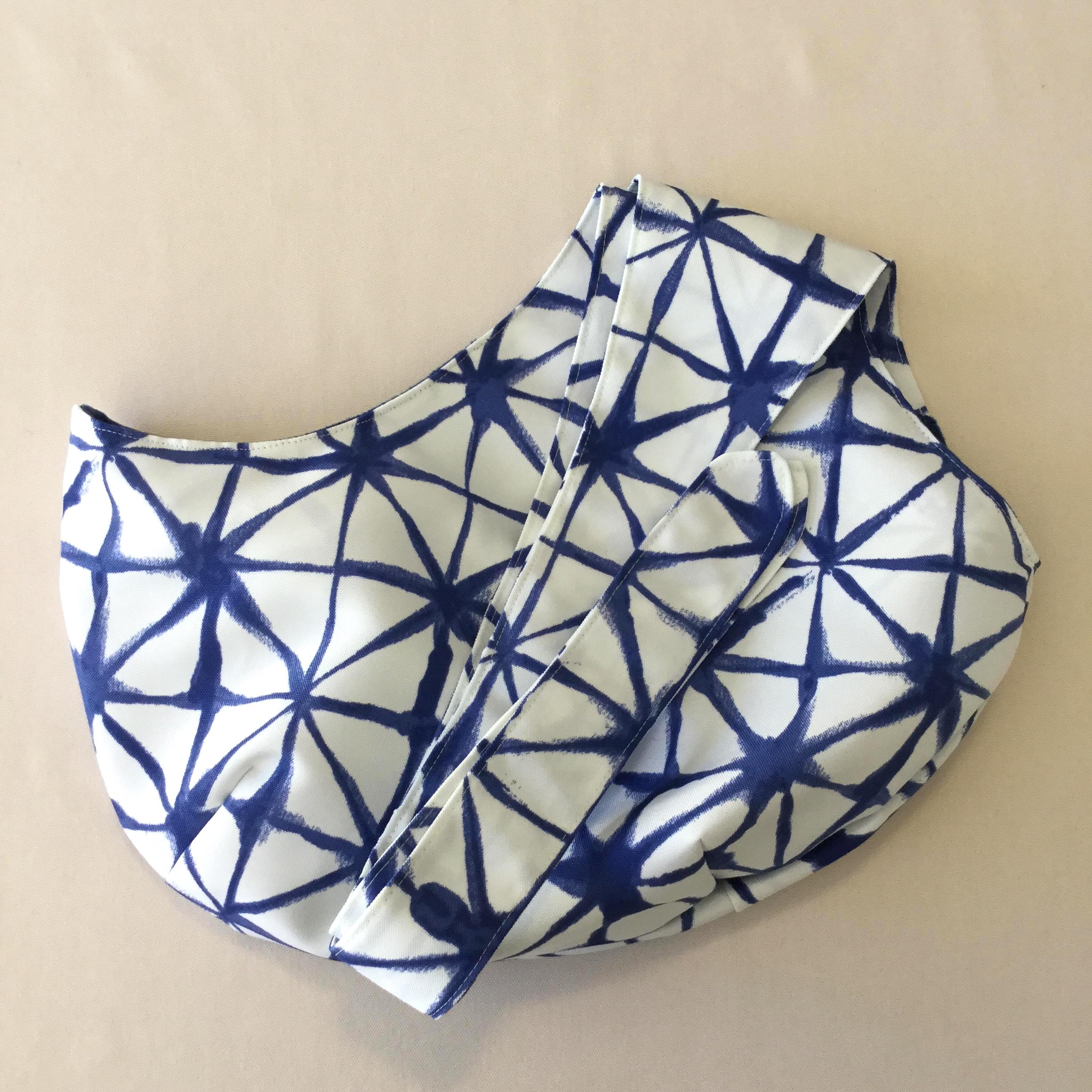 The sling has a white & blue shibori weatherproof canvas exterior fabric and minky fleece internal lining. This combination ensures that your furry friend will stay warm and snug in all weathers. This is great for smaller pets who are older or unwell but still like to get out and about. Machine washable on a cool, quick wash