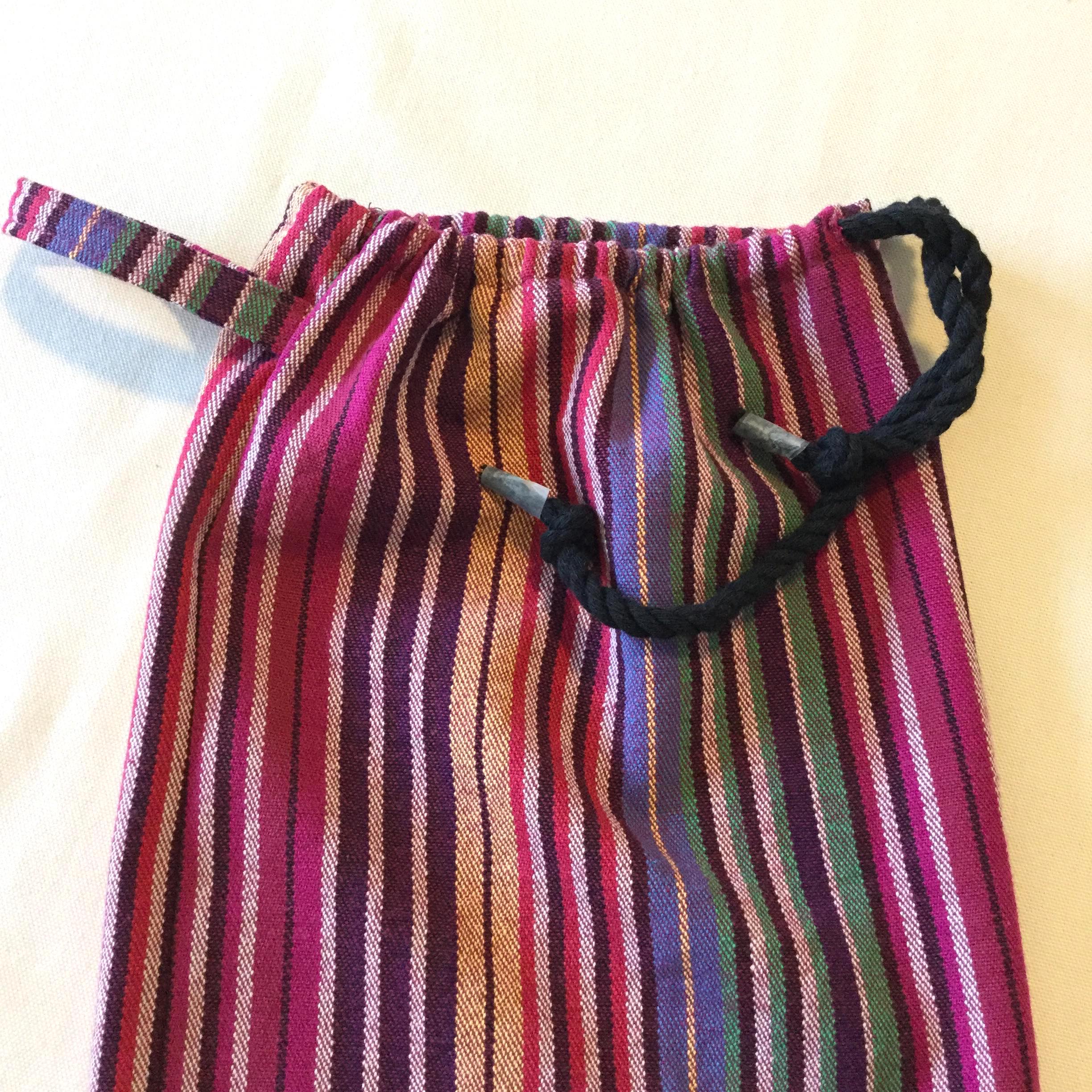 Get rid of those endless piles of plastic bags with these Grocery Bag Dispensers! Ideal for recycling your bags and keeping them all in one place. Handmade using sturdy canvas drill stripes fabric, these bags are made to last! The top of the bag expands so you can put bags in and then secure with strong cord. The bottom of the bag has elastic so that you can easily remove plastic bags as you need them