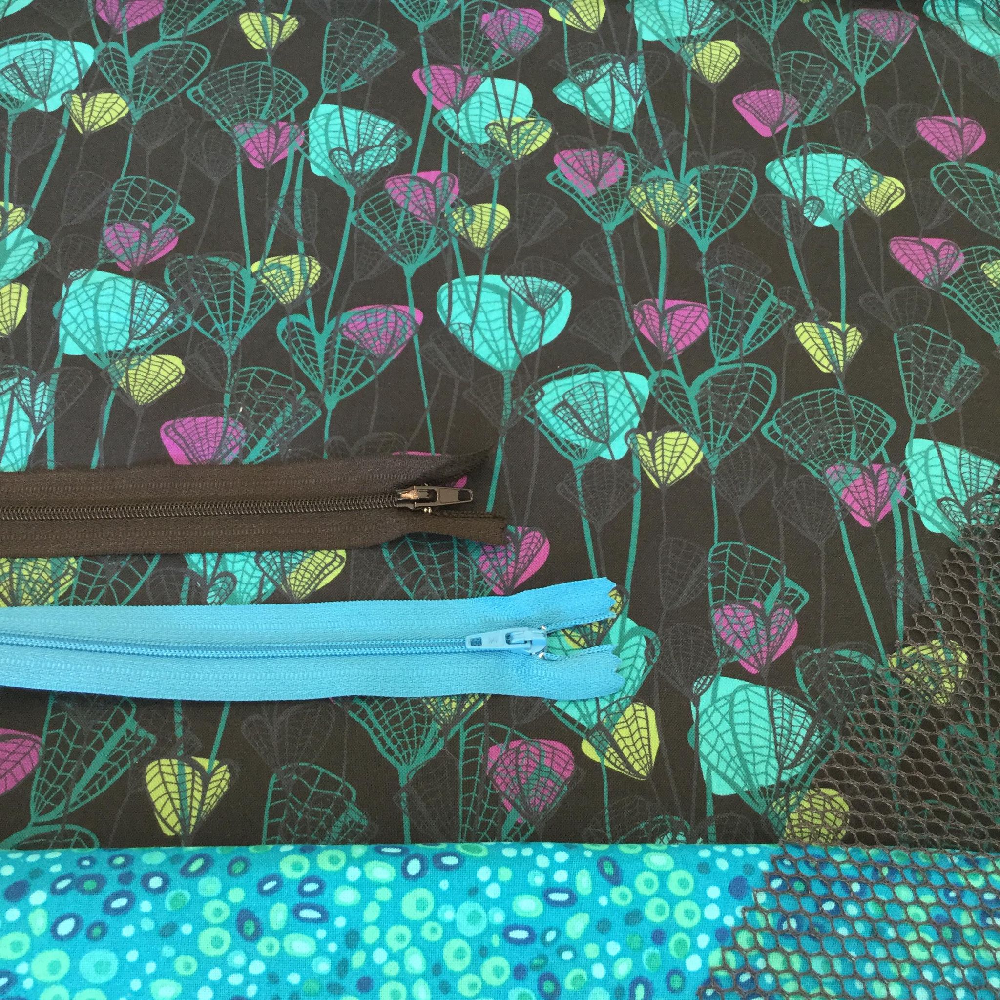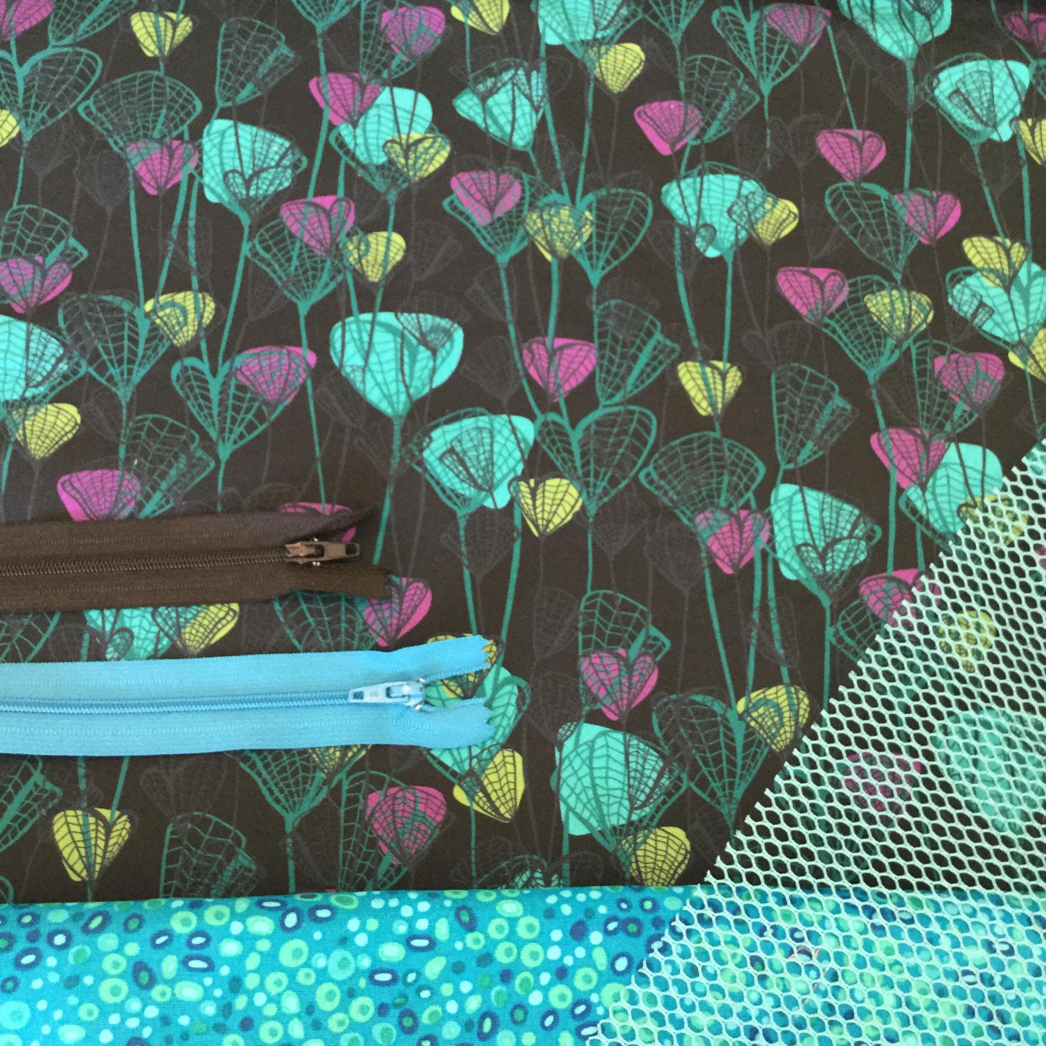 I’ve put together some suggested fabric options. Once they are ordered and made I’ll add photos to this listing 🙂 In this listing you can choose whether you’d like to have aqua or black mesh and an aqua or black zipper