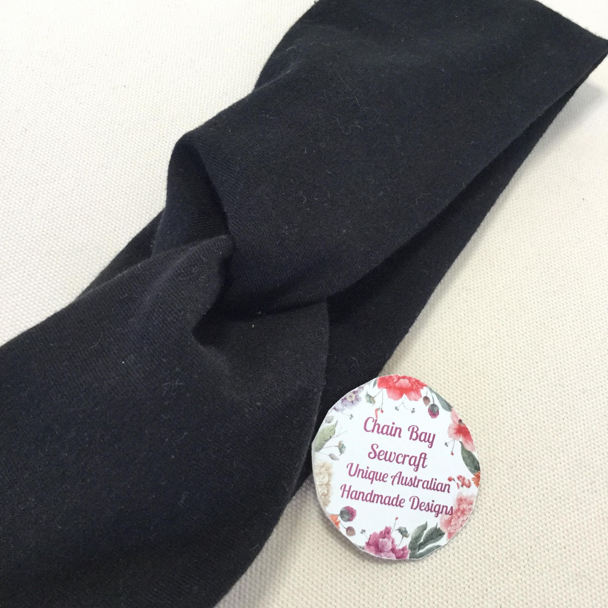 The new Chain Bay Sewcraft Handmade Twisted Headbands are made with black rayon knit fabric. They are ideal for yoga, sports, travelling or everyday use. The twist feature can be worn at the front or turn round for a stylish flat band