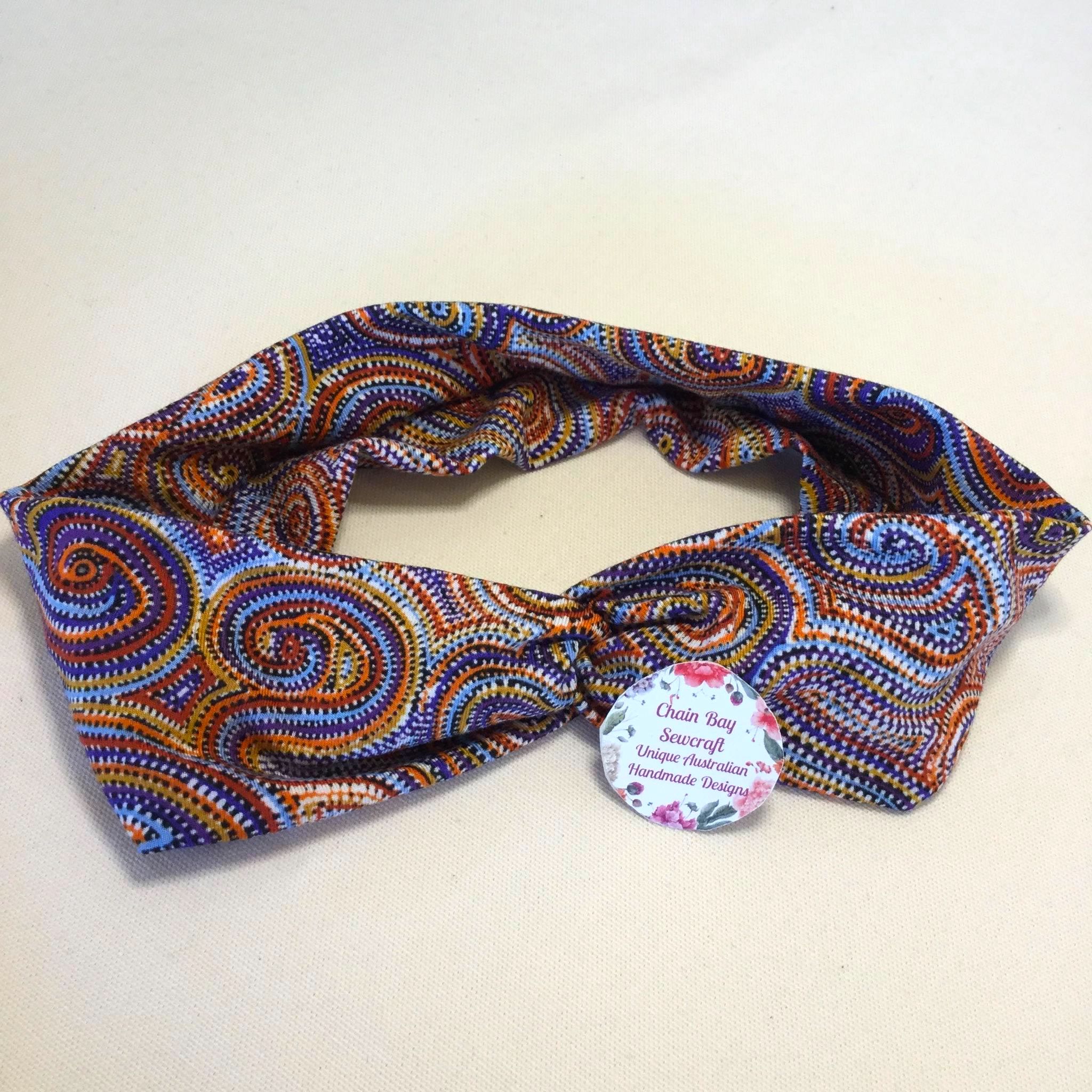 The new Chain Bay Sewcraft Handmade Twisted Headbands are made with vibrant Mina Mina fabric by Indigenous artist Pauline Napangardi Gallagher. They are ideal for yoga, sports, travelling or everyday use. The twist feature can be worn at the front or turn round for a stylish flat band
