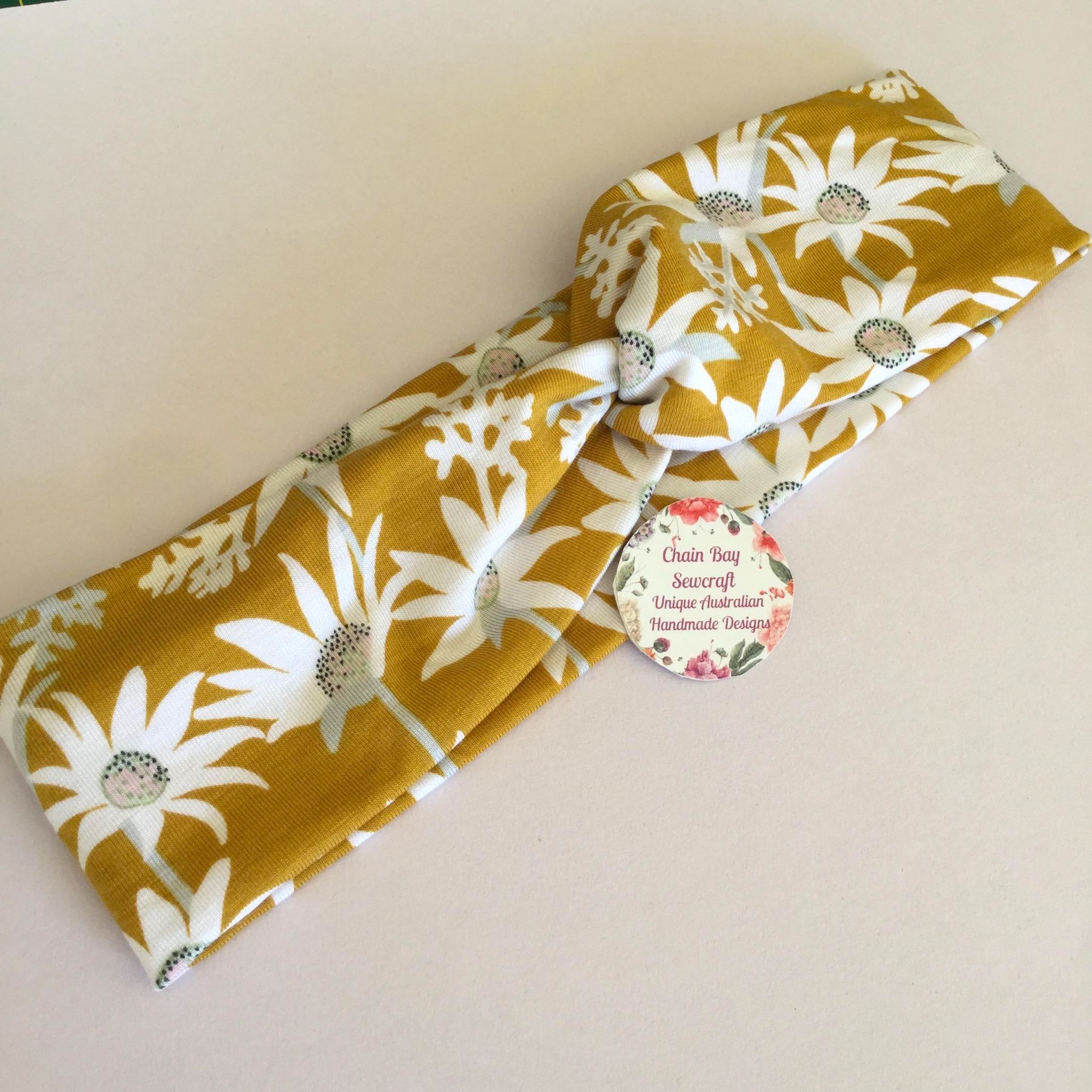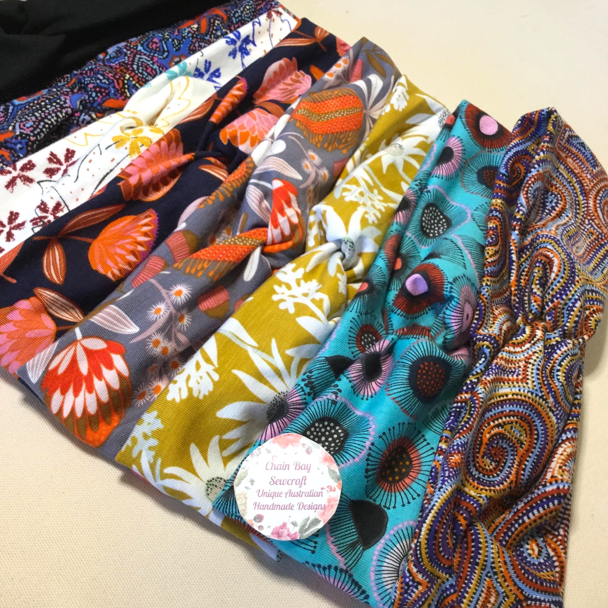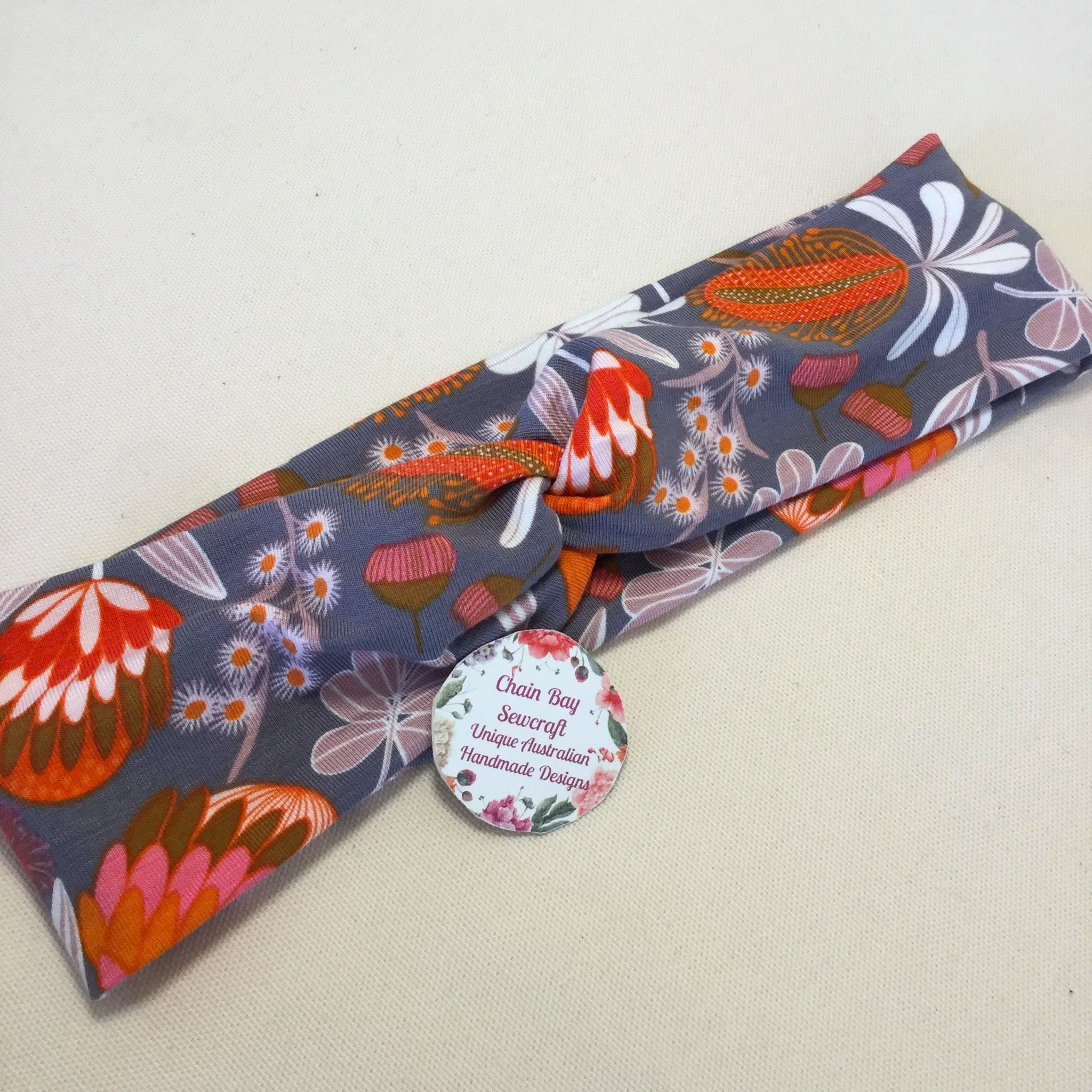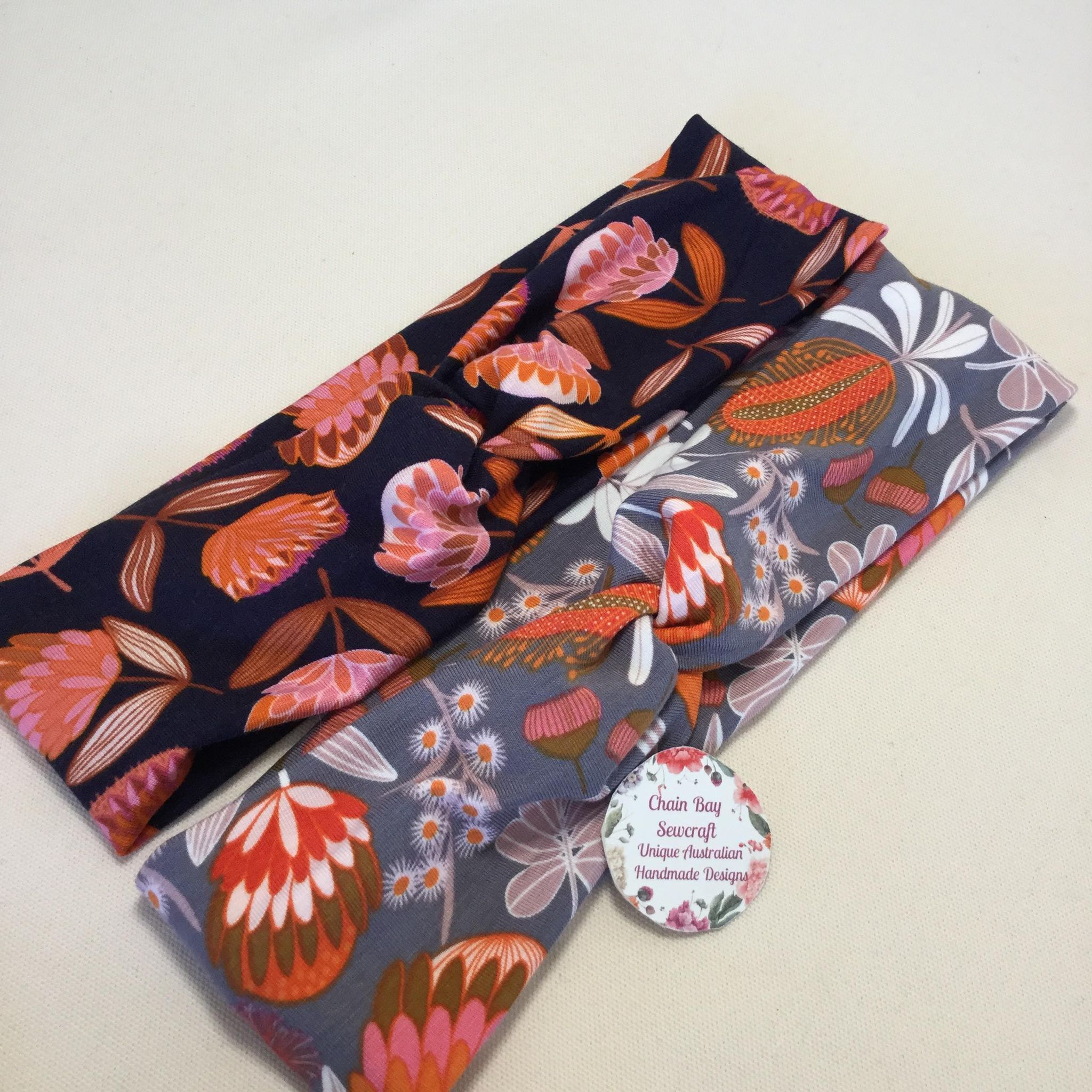 The new Chain Bay Sewcraft Handmade Twisted Headbands are made with stunning Jocelyn Proust native bouquet fabric showcasing an array of beautiful Australian native flowers. They are ideal for yoga, sports, travelling or everyday use. The twist feature can be worn at the front or turn round for a stylish flat band