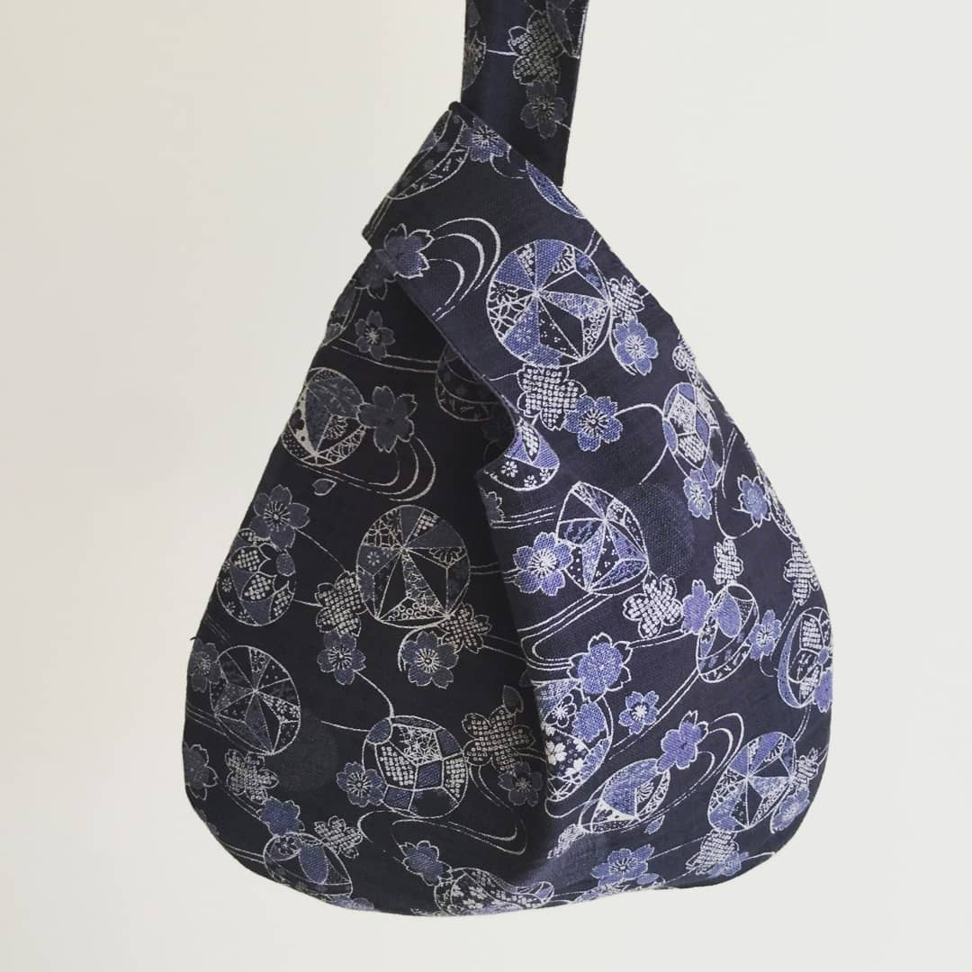 I bought this Japanese Temari Balls linen fabric on a recent holiday to Japan. It contrasts beautifully with the cotton grey lining fabric. This lightweight knot bag is fully reversible making it two bags in one! It’s ideal for days out or storing your small craft projects. It wraps around your wrist or over your arm for easy transportation. I have a limited amount of this fabric so be quick to order before they’re gone! 🙂