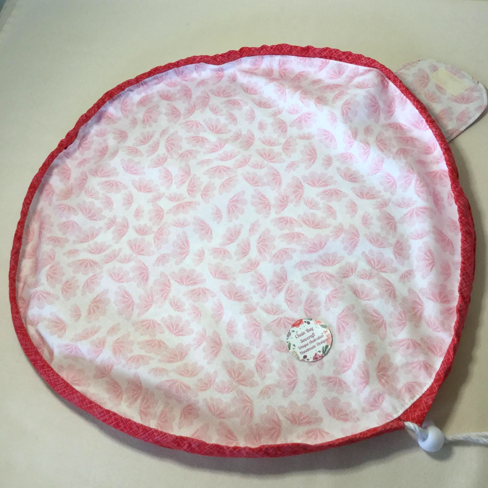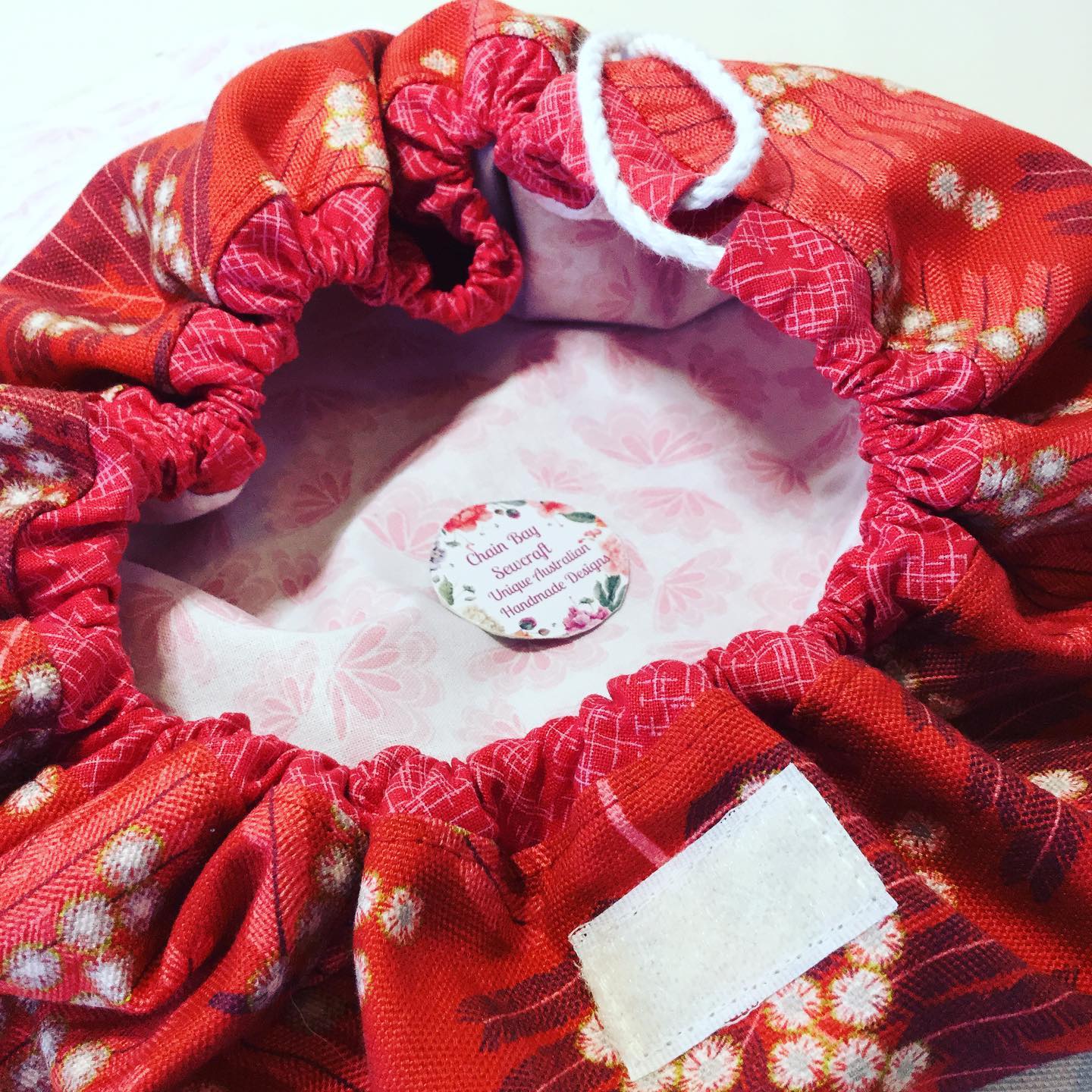 This stylish new Large Handmade Drawstring Bag is great for organising and storing your essentials. It’s also great for a make up bag, jewellery bag, project bag, travel, retreat or craft bag. The possibilities are endless! I designed and created this bag using stunning Jocelyn Proust Australian wildflower silver wattle fabric with a white pink floral lining and contrasting cerise band. The bag opens wide so that you have complete access to the contents and secures closed with the drawstring cord and velcroed flap. Also available in Australian wildflower banksia. I will also be making a smaller version that will be available shortly