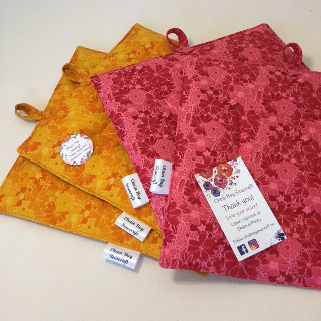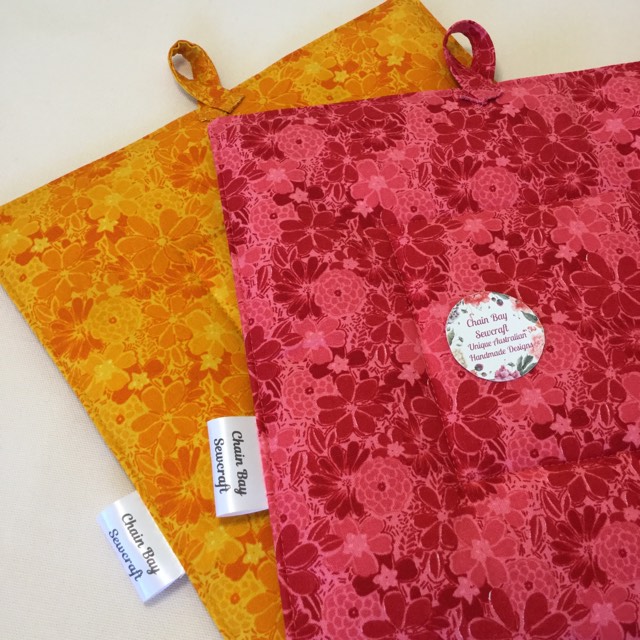 Fabric placement may differ as each pot holder is individually handmade. Chain Bay Sewcraft handmade pot holders are available in a variety of fabrics including Fruity Orange and stunning Indigenous fabrics – Jijaka Desert Tracks, Jijaka Sea Turtles Blue, Jijaka Desert Wind, Bunya Nut Festival, River Turtles and Spirals. You can also purchase a set of six Large Handmade Indigenous Pot Holders saving $12