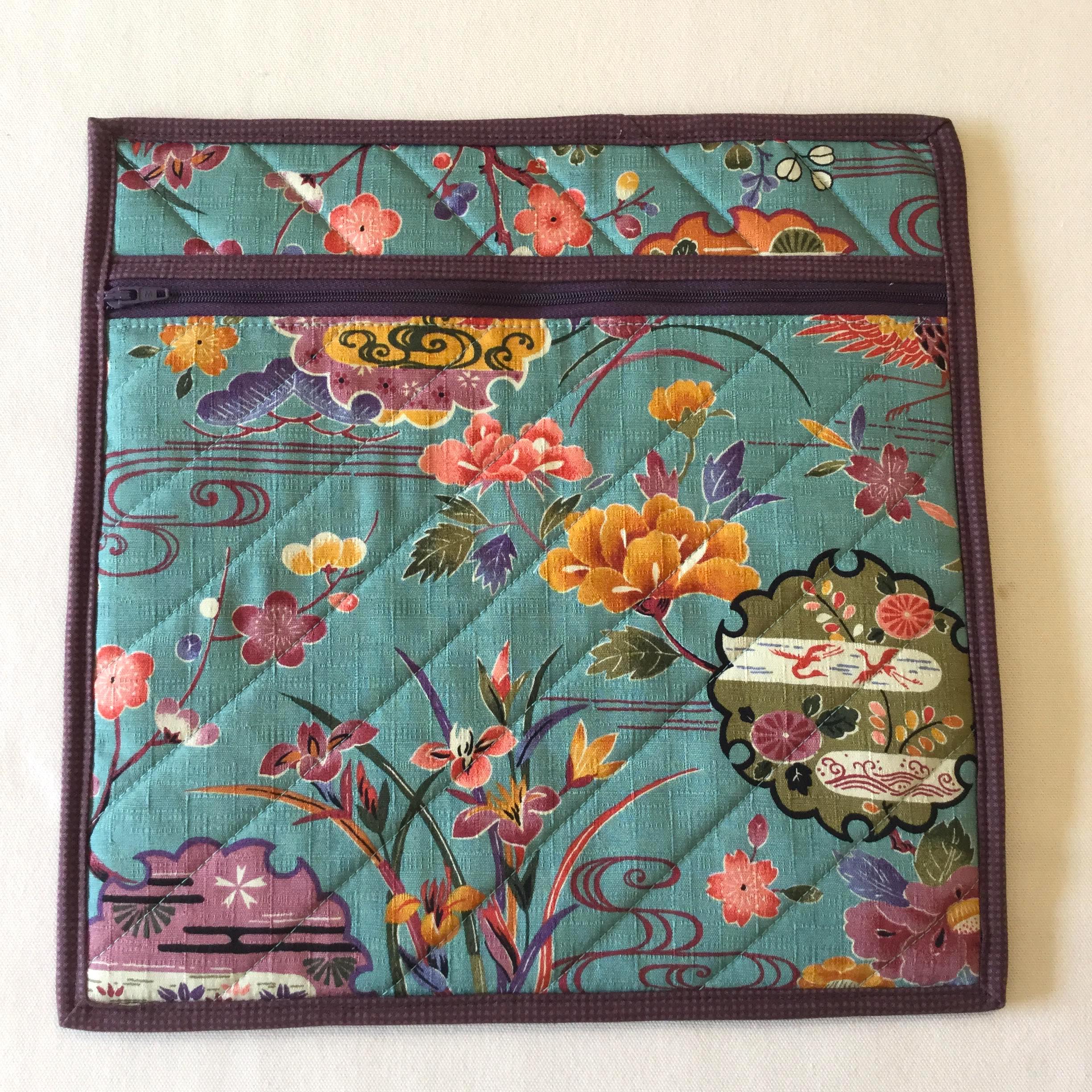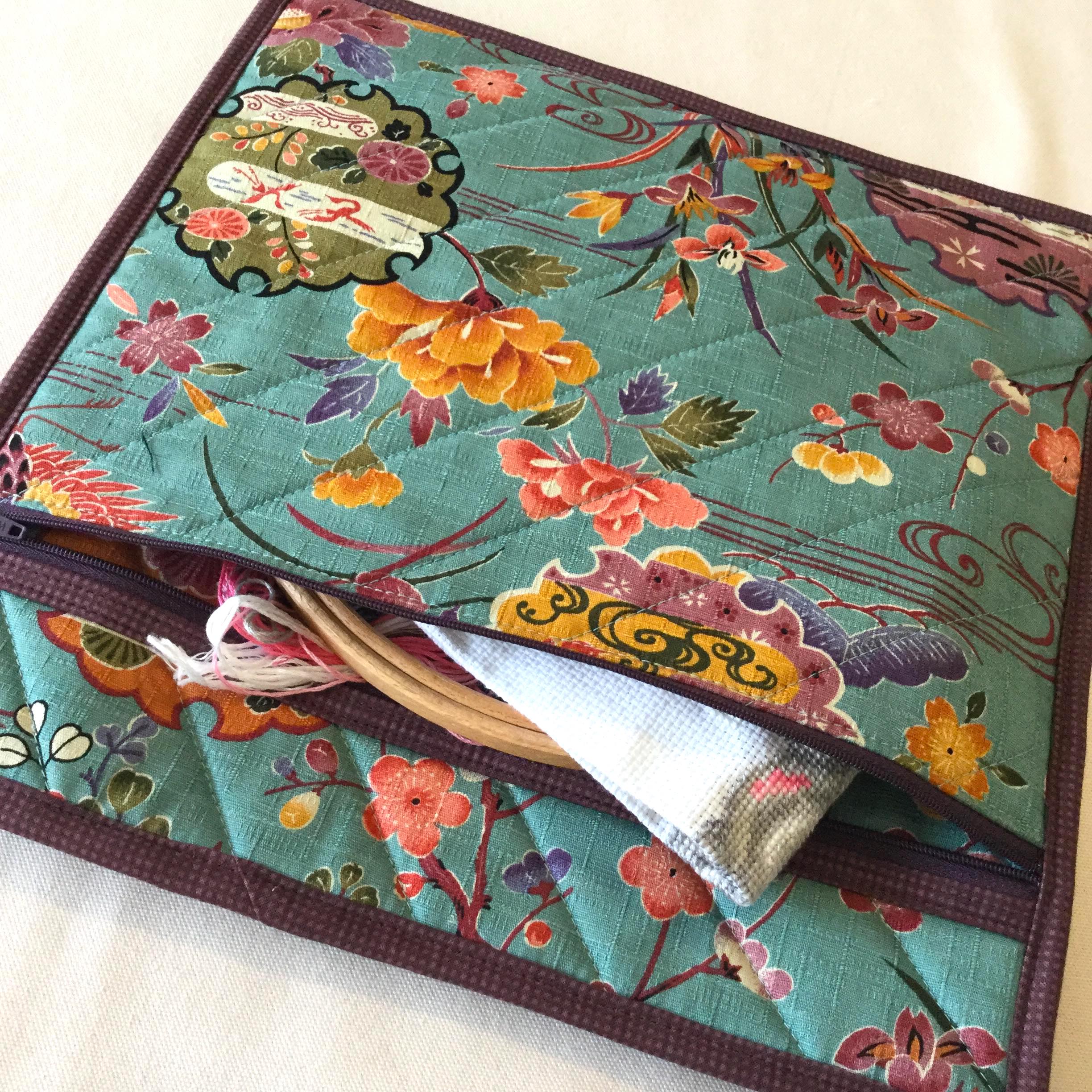 I bought this stunning Japanese Floral Crane fabric on a recent holiday to Japan. This teal fabric is new to my Craft Bag collection and contrasts beautifully with the purple zip and binding. The Quilted Cross Stitch Project Bag is designed with the aim of keeping your sewing projects organised with separate compartments for canvases, threads and patterns. It will also be great as a cross-stitch bag, travel sewing bag or retreat bag. The bag comes in either Small, Medium or Large and is also available in a Project Bag Set – see separate listings