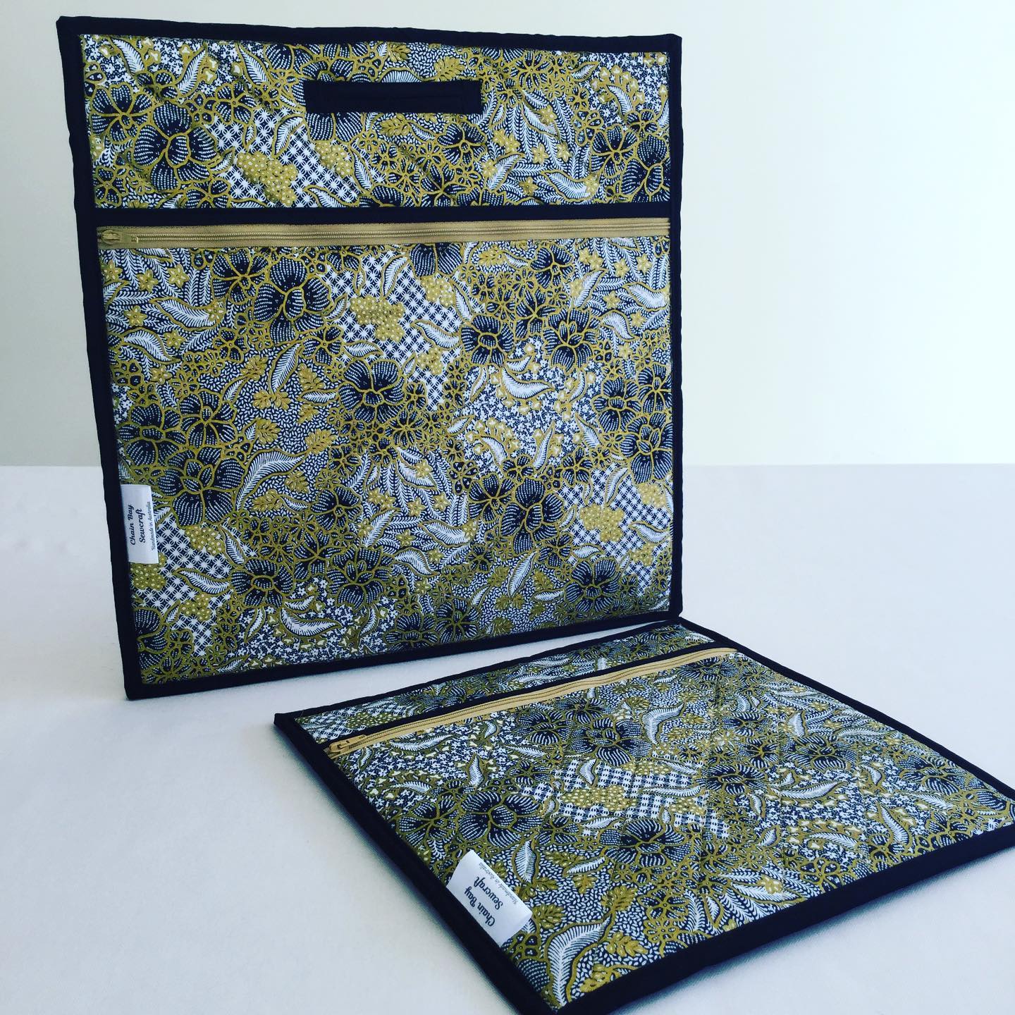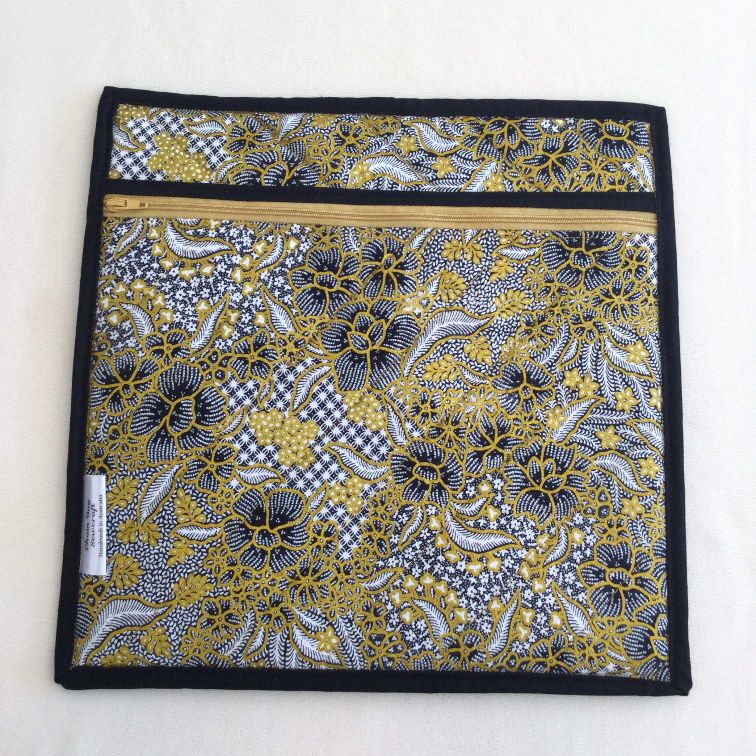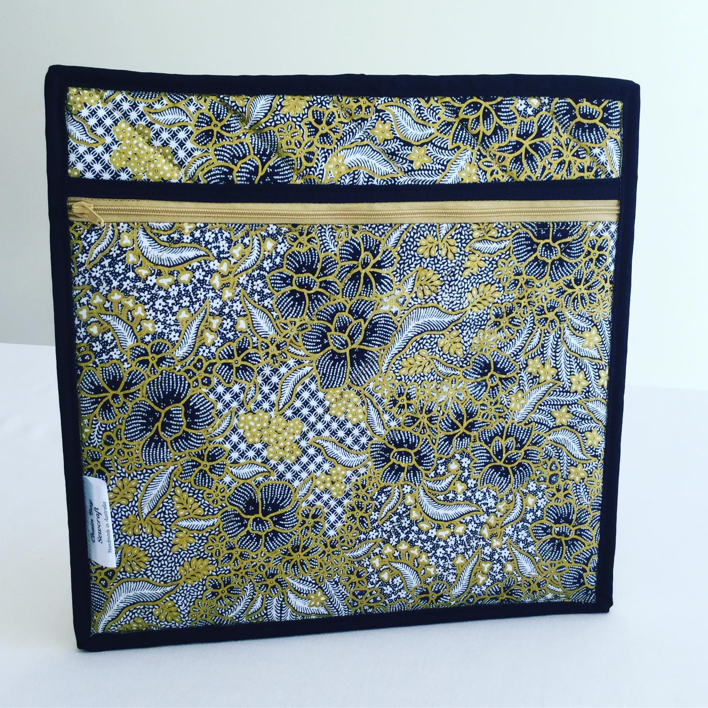 The Japanese golden floral fabric on the Quilted Cross Stitch Project Bag looks simply stunning! The bag was designed with the aim of keeping your sewing projects organised with separate compartments for canvases, threads and patterns. It will also be great as a cross-stitch bag, travel sewing bag or retreat bag. The bag comes in either Small, Medium or Large