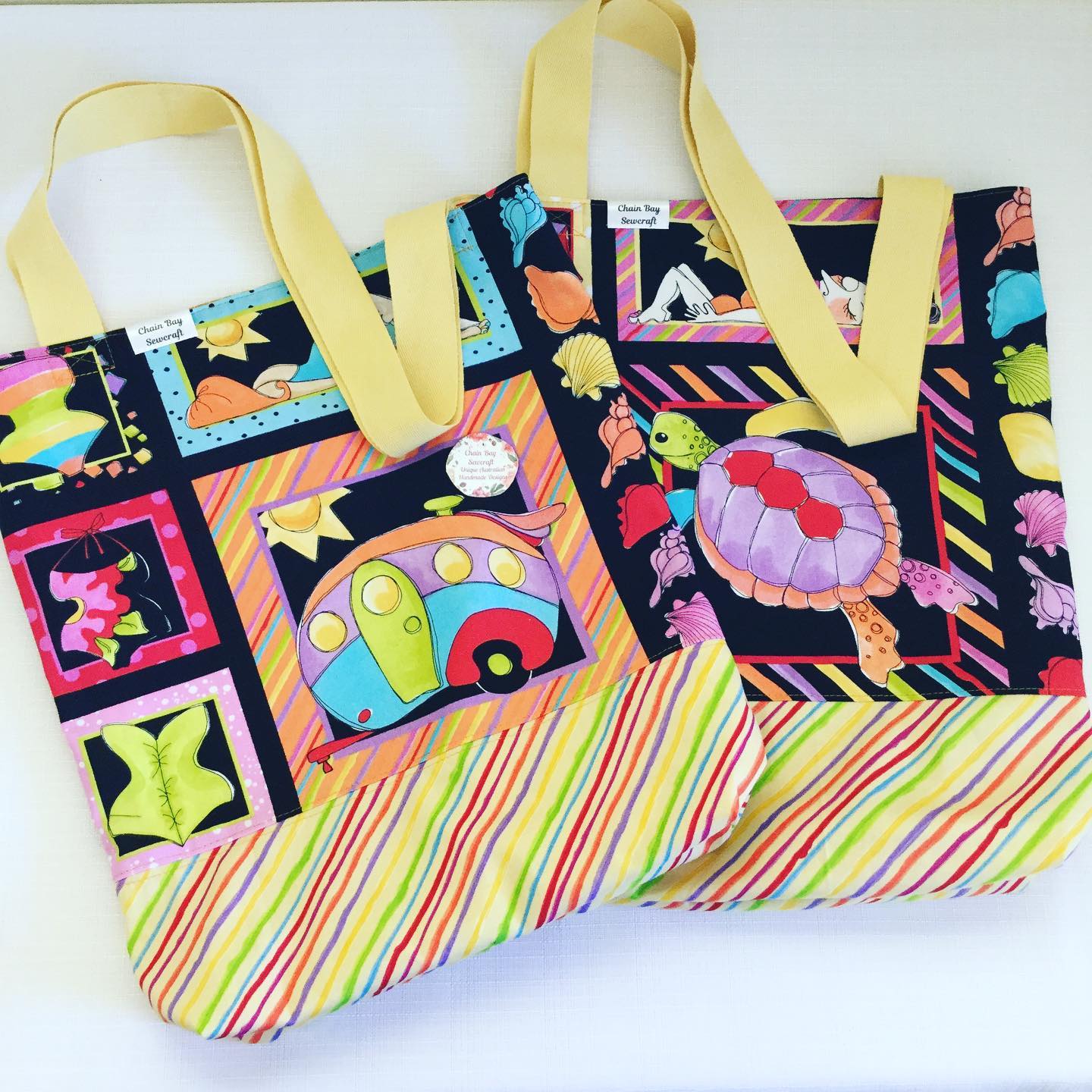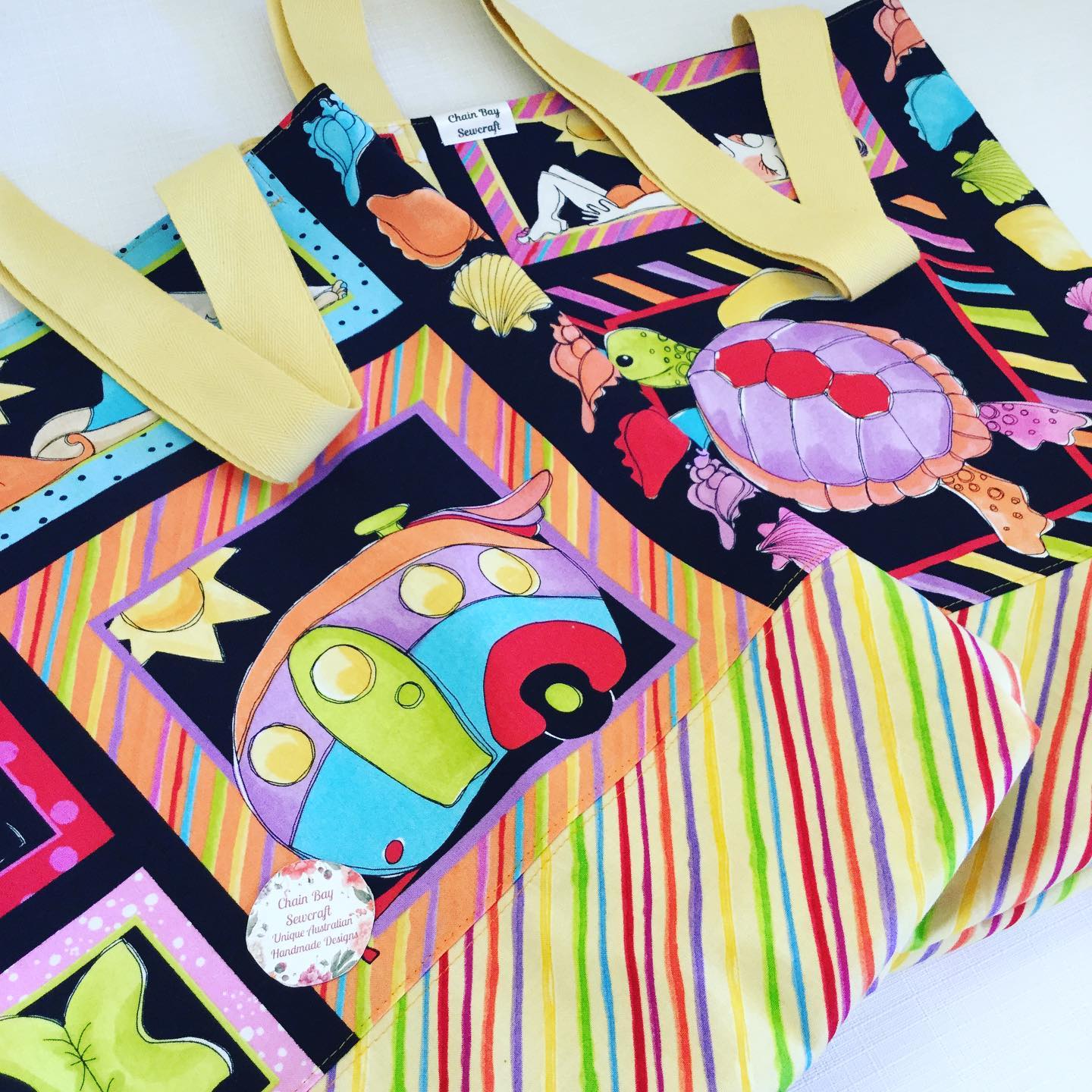 Fabric placement will may differ as each ‘Beach fun’ tote bag is individually handmade