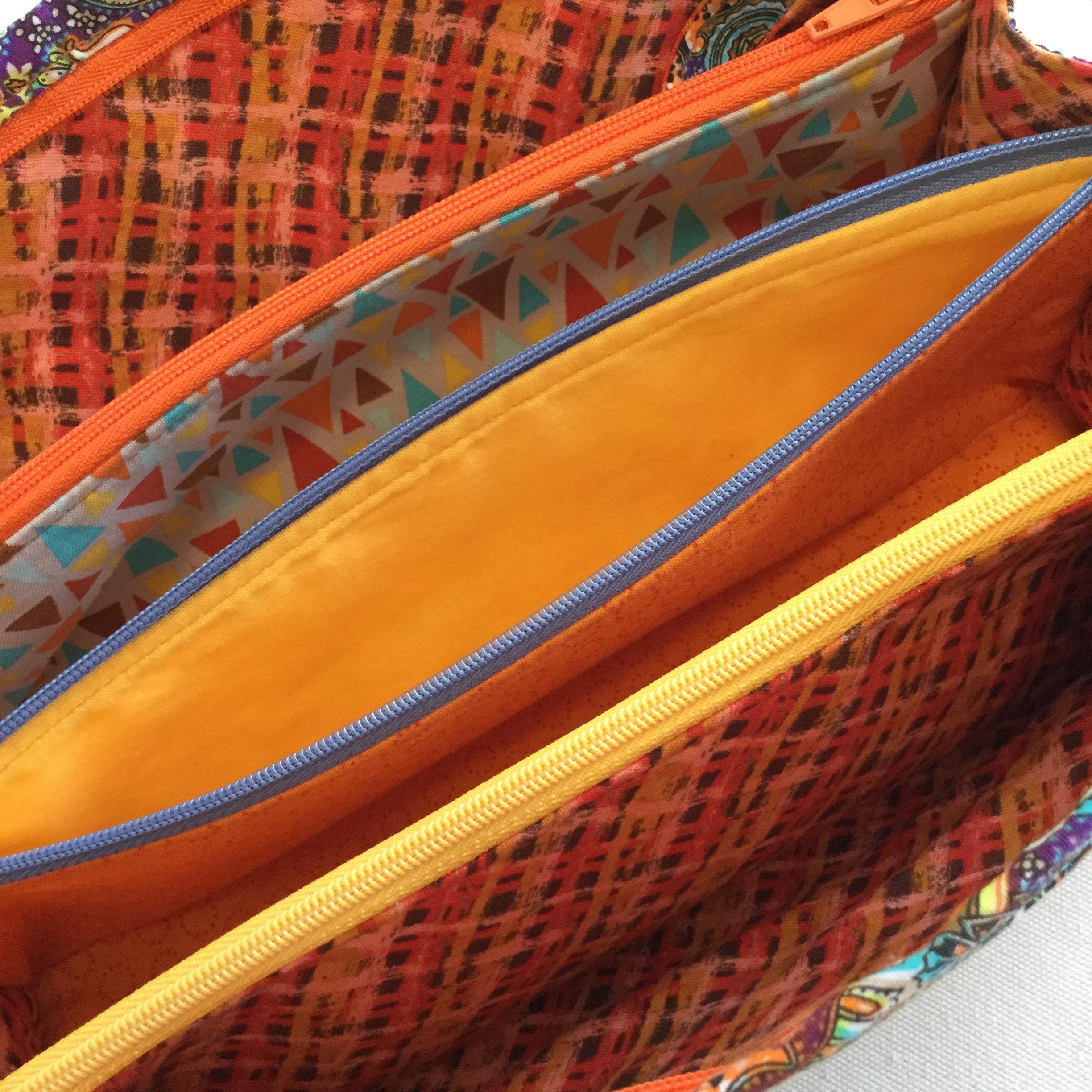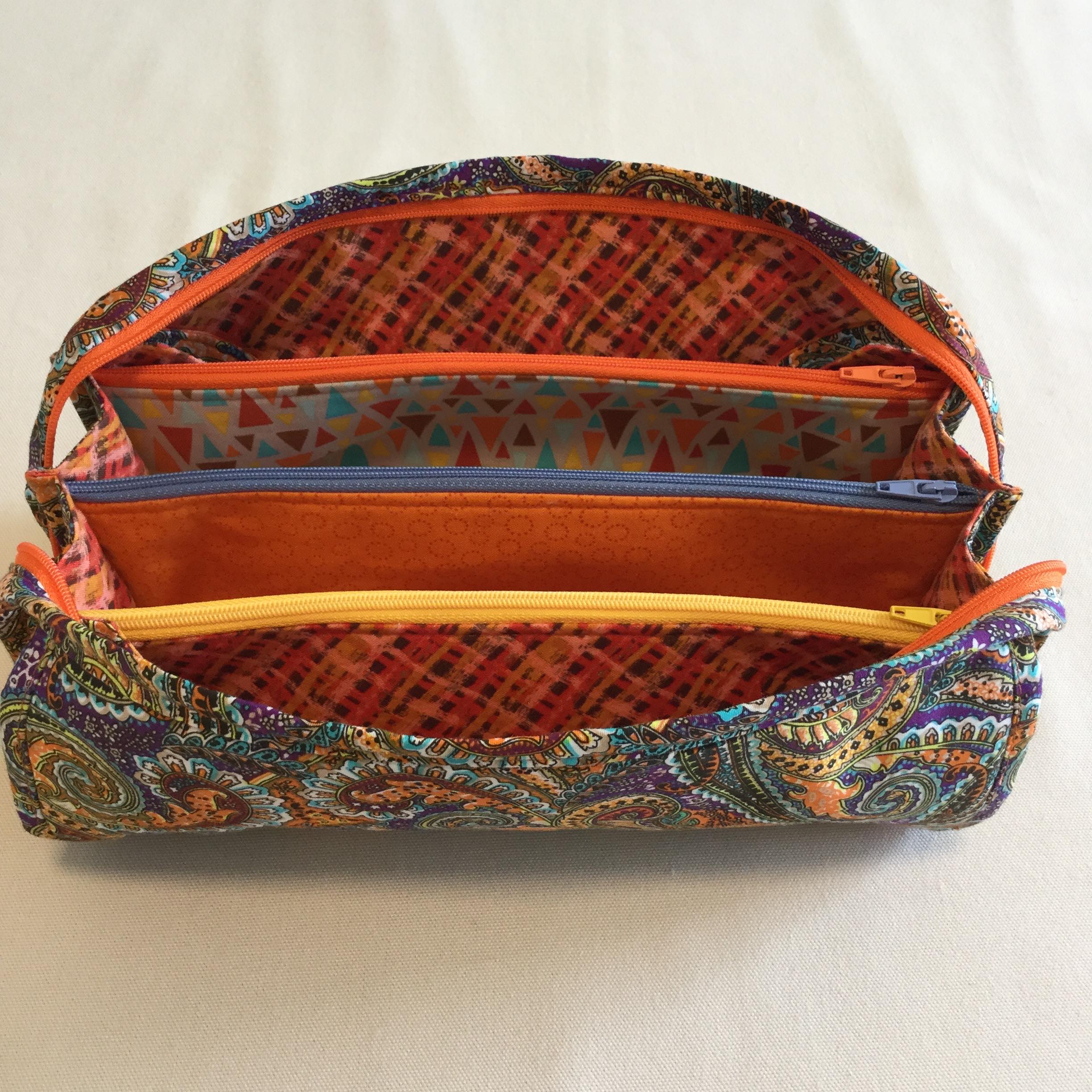 If you love orange you’re going to love this orange explosion in a bag! This versatile Paisley Orange Triple Zipper Bag is great for travel or storing your jewellery, craft supplies or for keeping your essential items organised. The bag has three zippered compartments and four internal compartments. The large zippered handles allow easy access to all compartments and also make this very easy to carry around