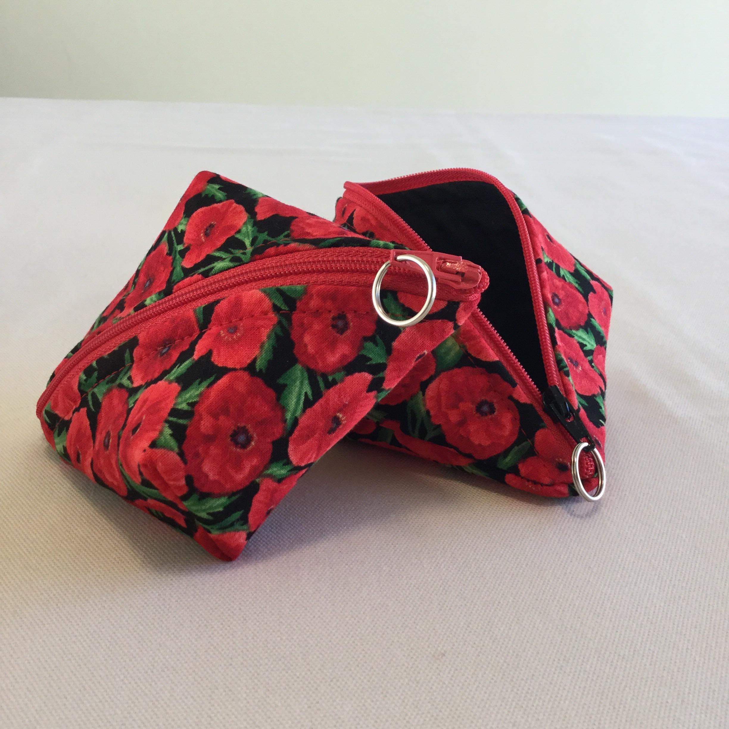 These cute Pooch Pouches are great for keeping your keys and doggy bags safe when out and about. The strong ring easily attaches to your lead so you won’t forget it when you go out. I’ve used this bright poppies black fabric with a matching red lining