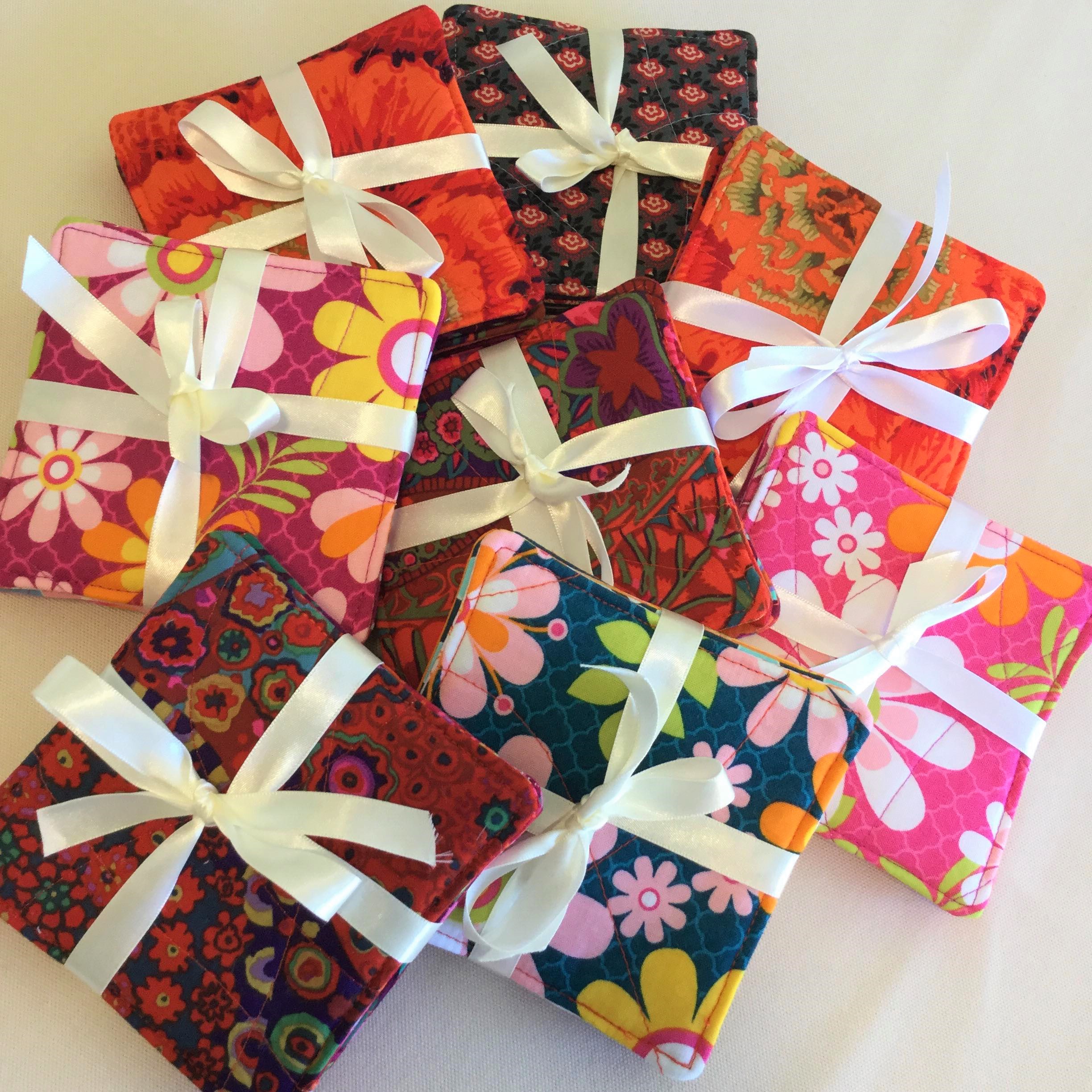 This colourful Pink Quilted Coaster Set is great for brightening up your table. The silk bow tie makes this an ideal gift for a special friend I have used 100% cotton and a double layer of fusible fleece to give a cushioned feel to the coasters. Special introductory offer – 1 set of 4 coasters $20 or 2 sets of 4 coasters $35