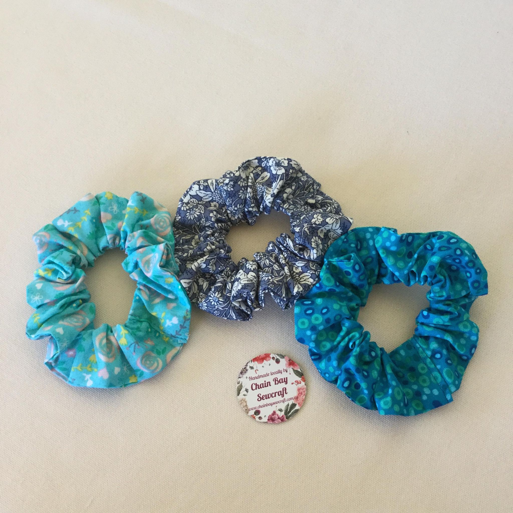 Scrunchies are back in town! Handmade Scrunchie in this gorgeous daisies blue floral fabric