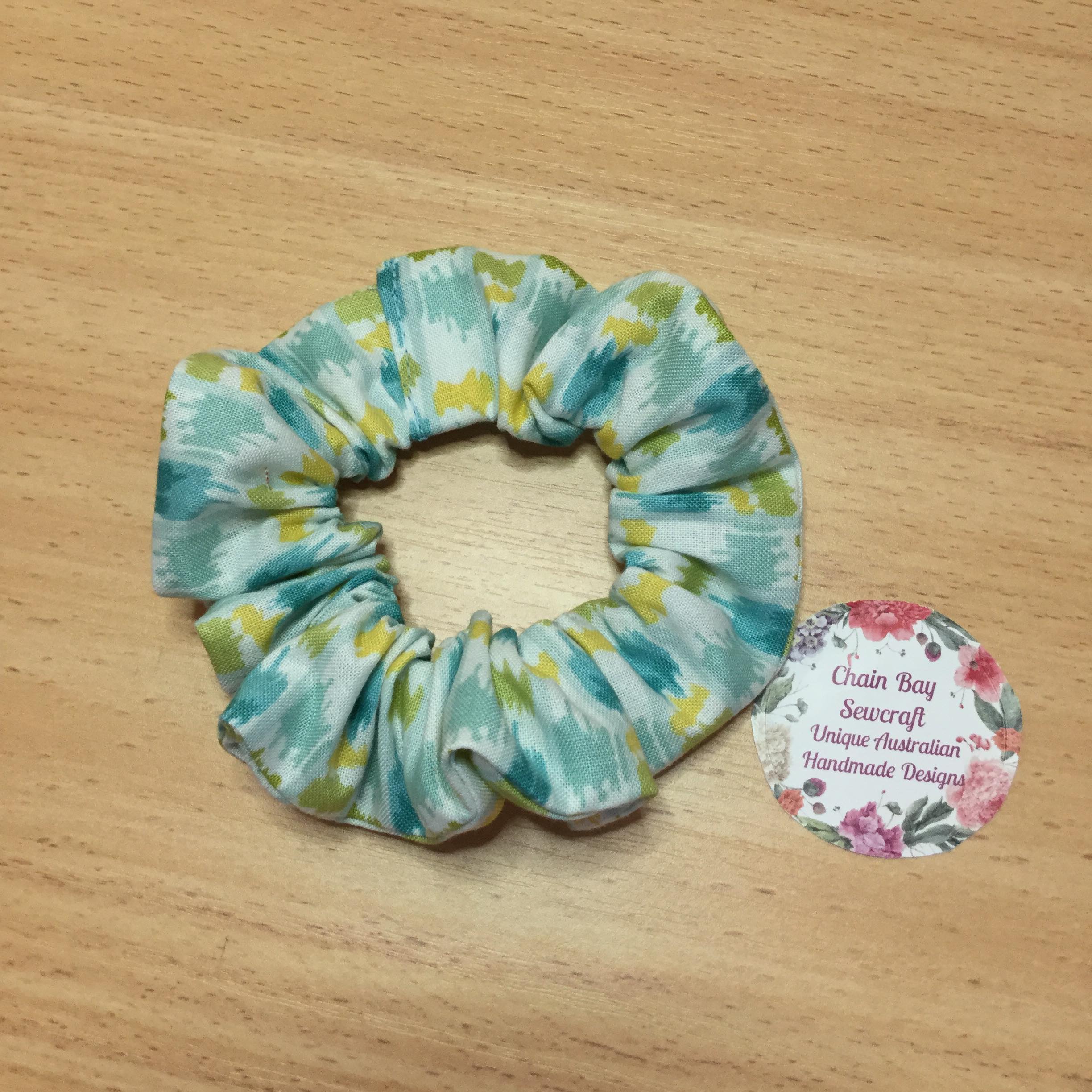 Scrunchies are back in town! Handmade Scrunchie in this gorgeous 100% cotton geometric blue fabric