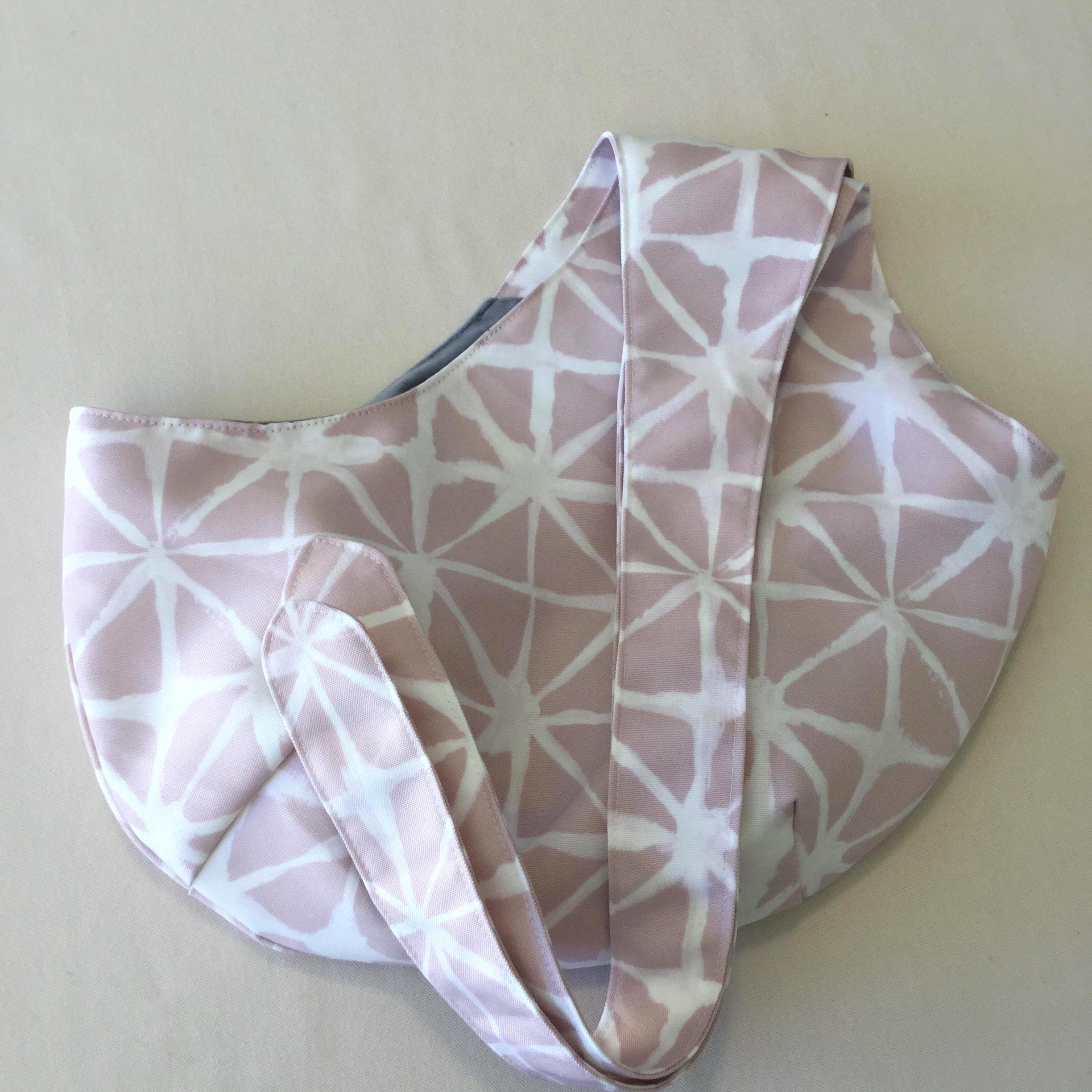 The Crossover Pet Sling Carrier is also available in White Blue Shibori, Pink White Shibori, Teal Hexagons or Avocado Hexagons
